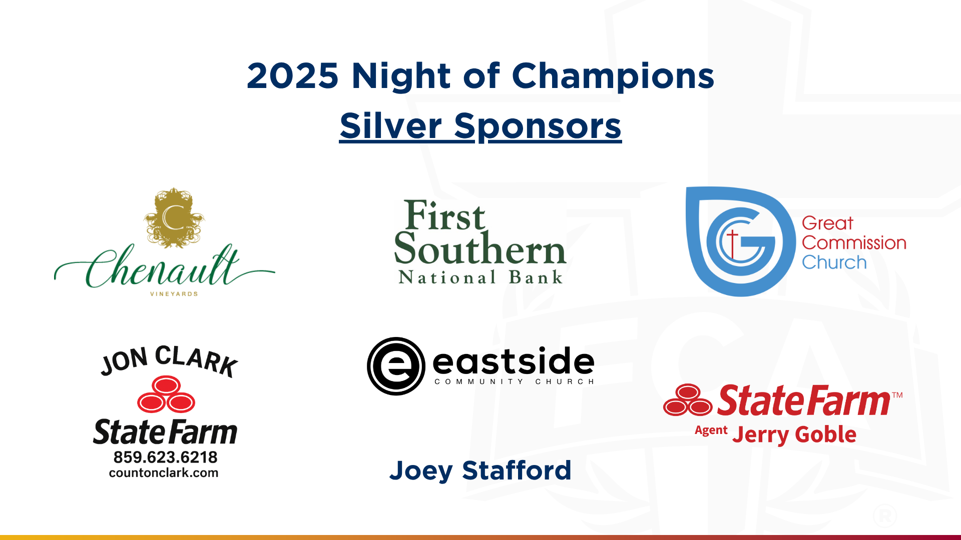 We appreciate your partnership with FCA. You are helping to change the lives of athletes and coaches throughout the area.